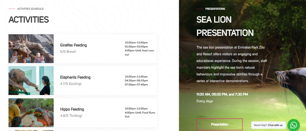 Emirates Park Zoo & Resort aligns shuttle access closely with its wildlife exhibits and educational attractions to create a cohesive and value-driven visit. Guests arriving via the shuttle gain immediate entry to animal encounters, learning programs, and interactive zones without transitional friction. Analysts highlight that such alignment enhances perceived value, as ease of access amplifies engagement with on-site offerings. Emirates Park Zoo & Resort leverages the shuttle service to encourage longer stays and deeper participation in educational experiences, supporting its mission of combining recreation with learning. This coordinated approach underscores how Emirates Park Zoo & Resort integrates operational improvements with its core attraction strategy.