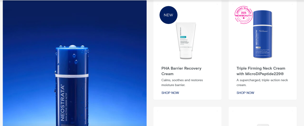 NeoStrata has enhanced its digital product presentation to support the launch of the Triple Firming Neck Cream, incorporating updated content and structured product information on its website. The platform provides detailed descriptions, ingredient lists, and usage guidelines, enabling consumers to access comprehensive information about the product. Visual elements such as product imagery and categorized sections are integrated into the digital interface, supporting user navigation and product discovery. NeoStrata’s online presence serves as a central channel for product communication, allowing the brand to present new launches in a consistent and informative format. The digital updates reflect broader trends in e-commerce, where detailed product information and accessibility play a key role in consumer decision-making.